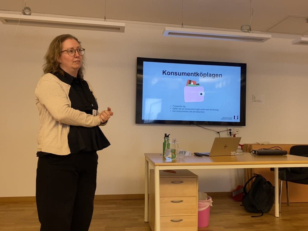 Konsumentrådgivare Anna informerade bl.a. om vad som gäller vid retur, reklamation, avtal. Vad är skillnaden mellan Köplagen och Konsumentköplagen? Hon gav också tips på hur vi kan skydda oss från bedrägerier.